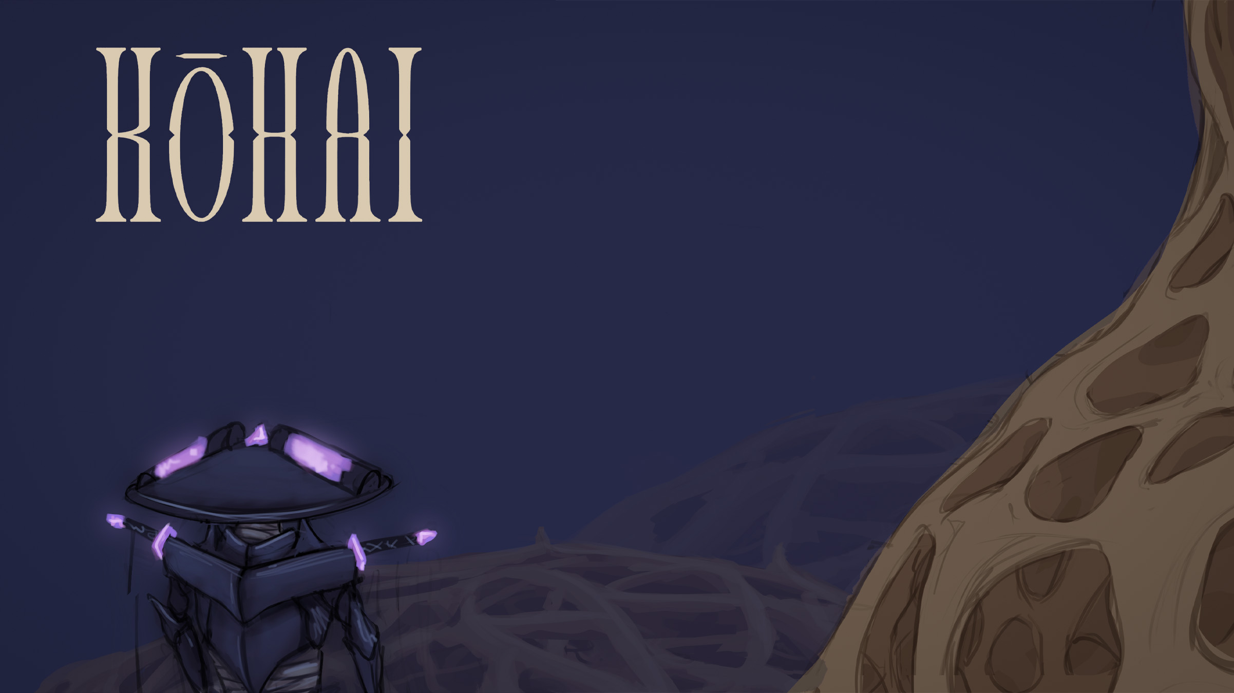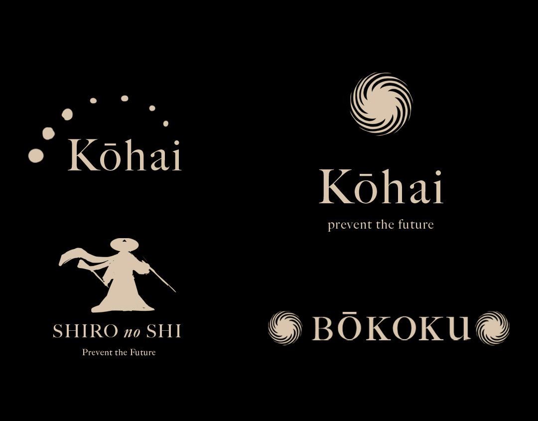 Depending on the context, the project name Kōhai can mean "devastation" in Japanese. After some experimentation, I created this logo using a font. I tried to give the logo the appearance of bone structure.