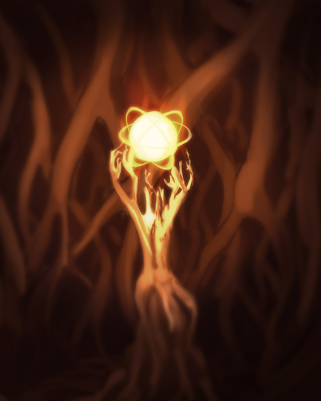 In the end, the Tribe of Light was almost completely wiped out. In the final great battle, the last survivor of the Light Tribe sacrificed himself to preserve the secrets of the Light. His name was NAGI. He gathered all his energy and tore the Tree of Eternity (a mighty tree from the sacred homeland), together with its surroundings, out of the earth, letting the new floating island rise into the clouds. In doing so, he consumed so much power that he had to reduce his existence to the absolute minimum. All that remained of him was an orb of pure energy. Since then, he has traveled with the island high above the surface of the Earth.