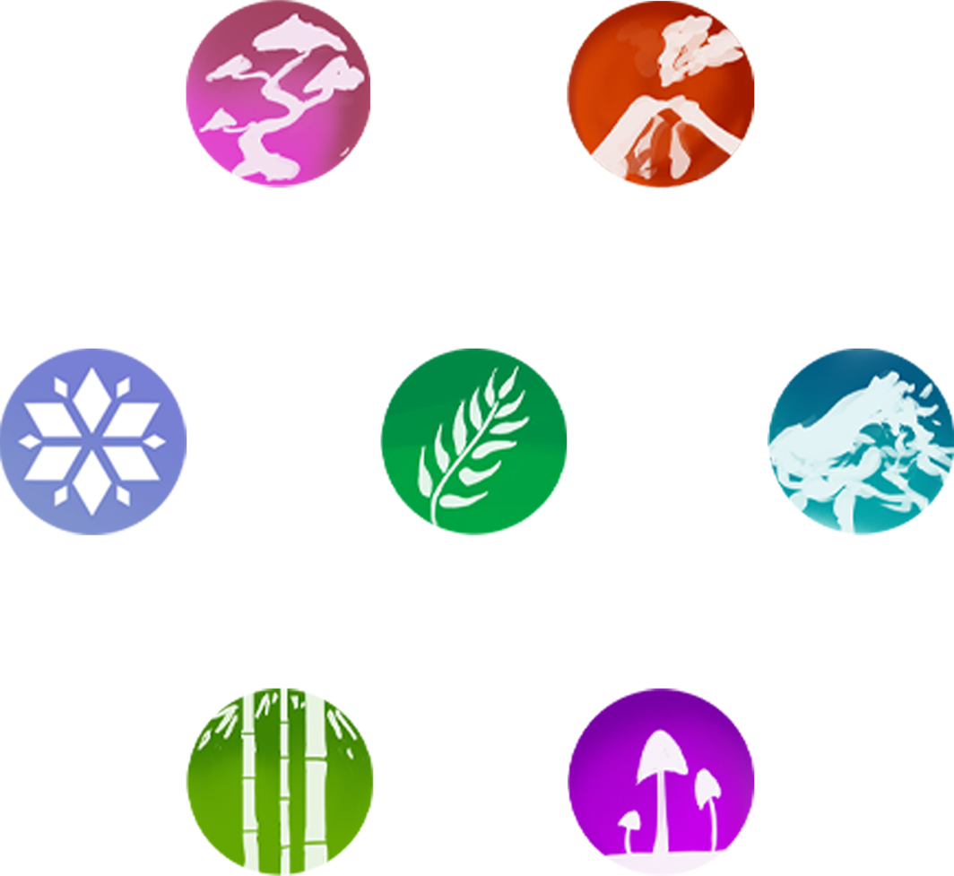 On the island that NAGI carried with him, seven different biomes exist. In the center lies a jungle, at the heart of which stands the Tree of Eternity. This tree, with its massive roots, holds the entire island together. Inside it rests what remains of NAGI. From there, he controls the entire island.