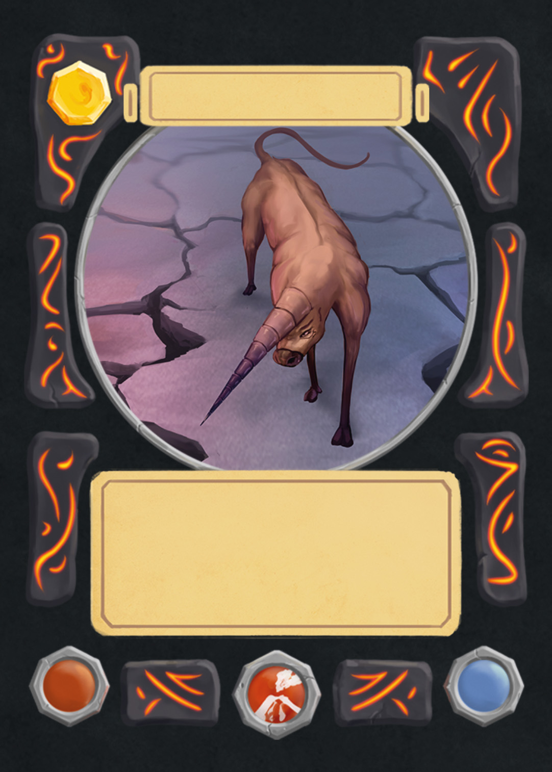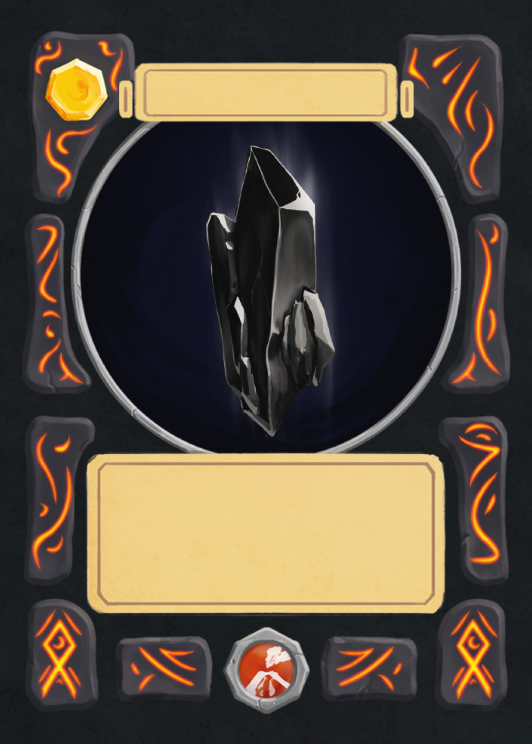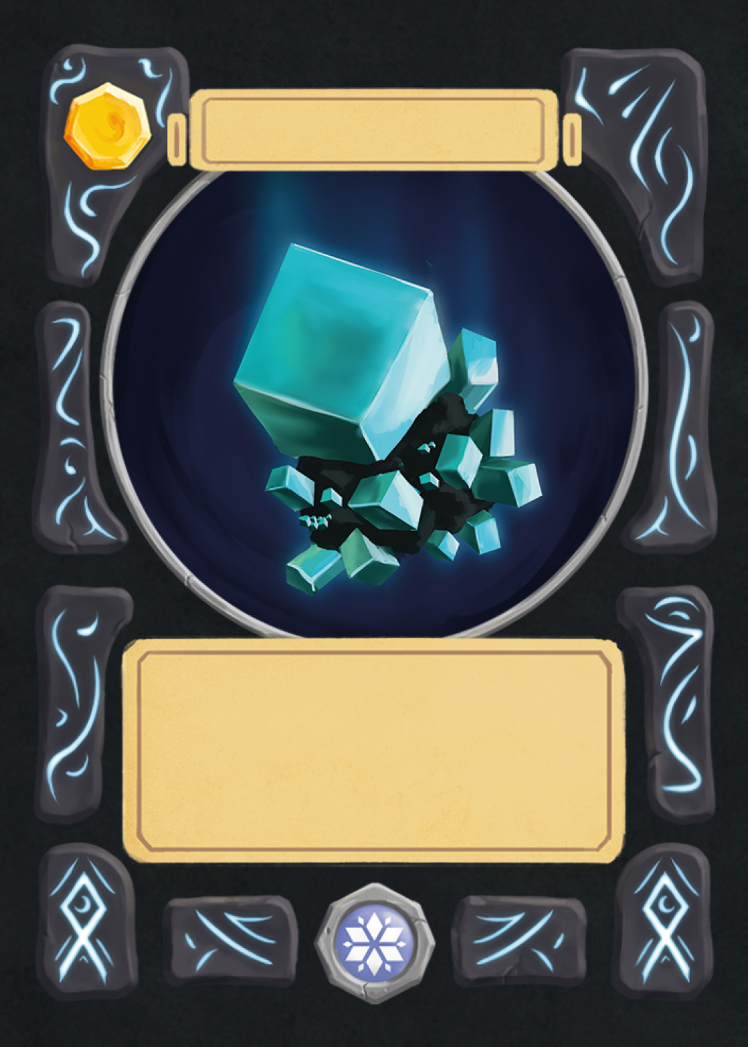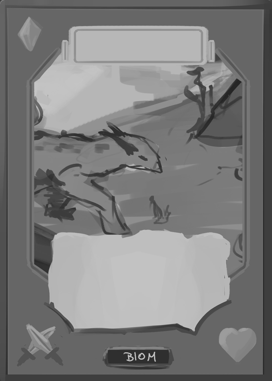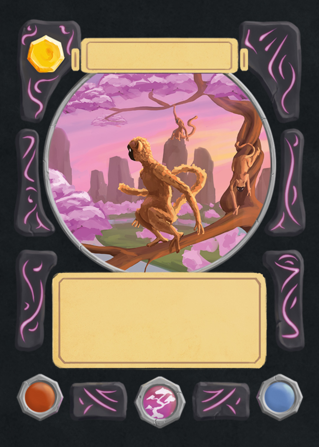 There are spell-, creature-, plant-, and adventure cards in Nagi, and to separate the plants from the rest, I changed the backprint color from orange to green. Here you can see the evolution of the card UI design from the first ideas to the final version.